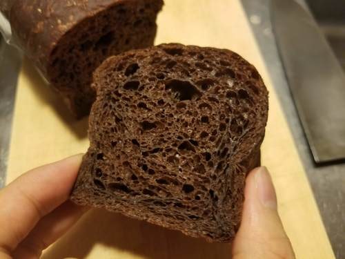 一見すごく甘そうに見えますが、カカオとコーヒー風味の甘くないパンです。