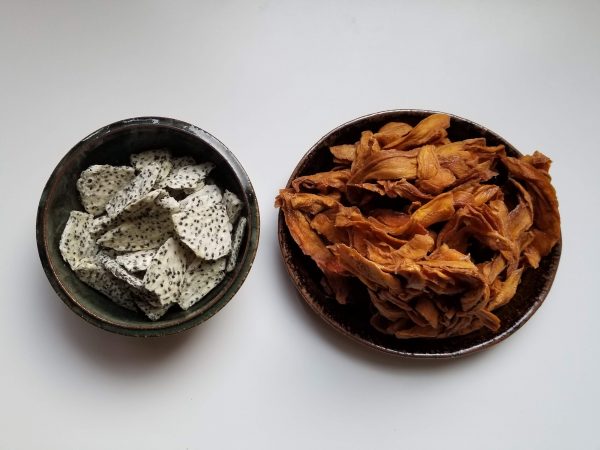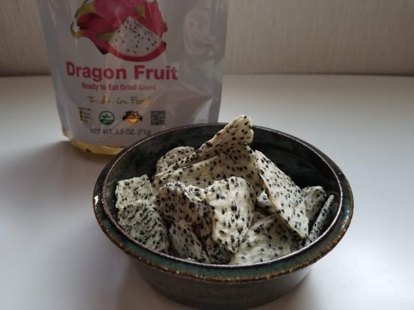 ドラゴンフルーツは日本ではあまり見ませんが、薄焼きの煎餅みたいな感じです。