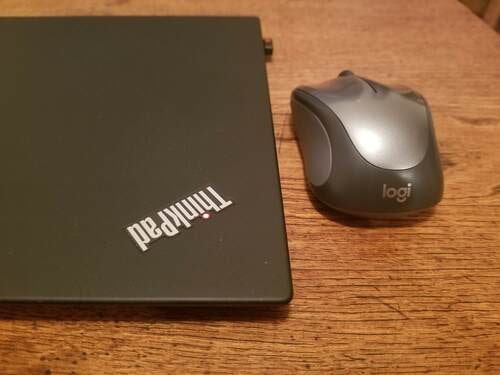 Thinkpadとセットで。ざらざらの木の机でも、ツルツル机の上でも安定して反応します。