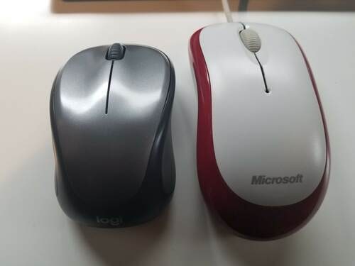 左が今回購入した「Logicool M235r」、右が今まで使っていた「Microsoft Optical Mouse」です。