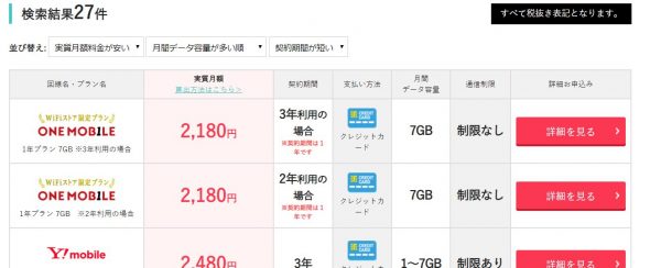 こちらは扱っているプランの種類がWiFiストアより豊富なので、より細かくじっくり検討したい人におすすめです。